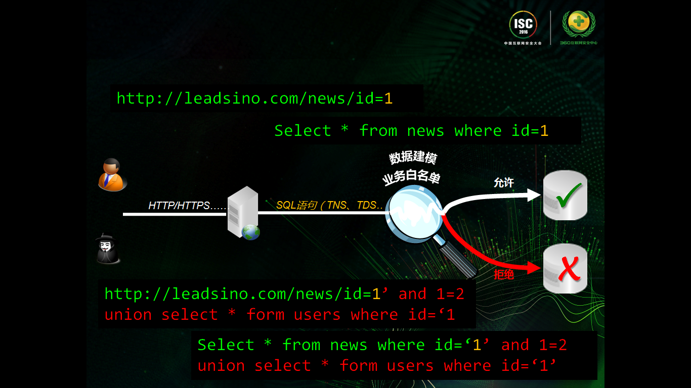 接下(xià)來看(kàn)看(kàn)我們是如何解決數據庫安全威脅的。在數據庫的衆多(duō)威脅中,業(yè)務系統遭到(dào)SQL注入攻擊,導緻數據庫拖庫應該算(suàn)是最大的威脅之一(yī)。而SQL注入攻擊是廣泛存在的,其攻擊手段隐蔽、特征不可窮舉、攻擊手段平民(mín)化,這些特點也讓其安全防護者頭痛。隻要人類還(hái)在編寫數據庫應用,就(jiù)存在SQL注入漏洞的威脅。